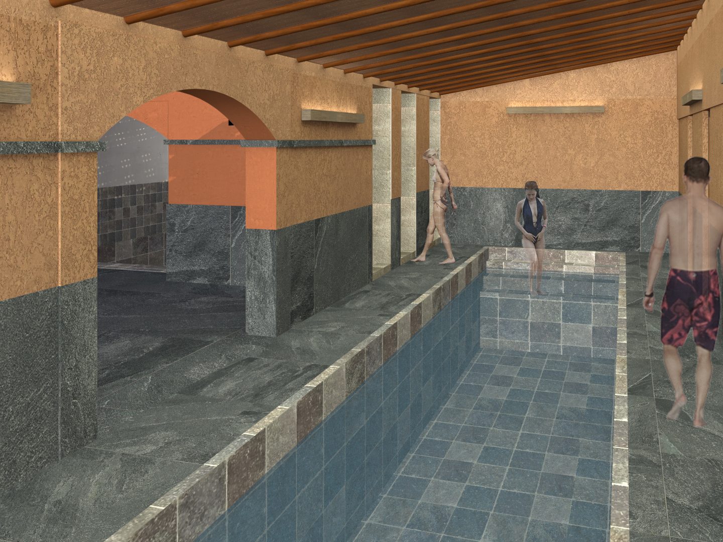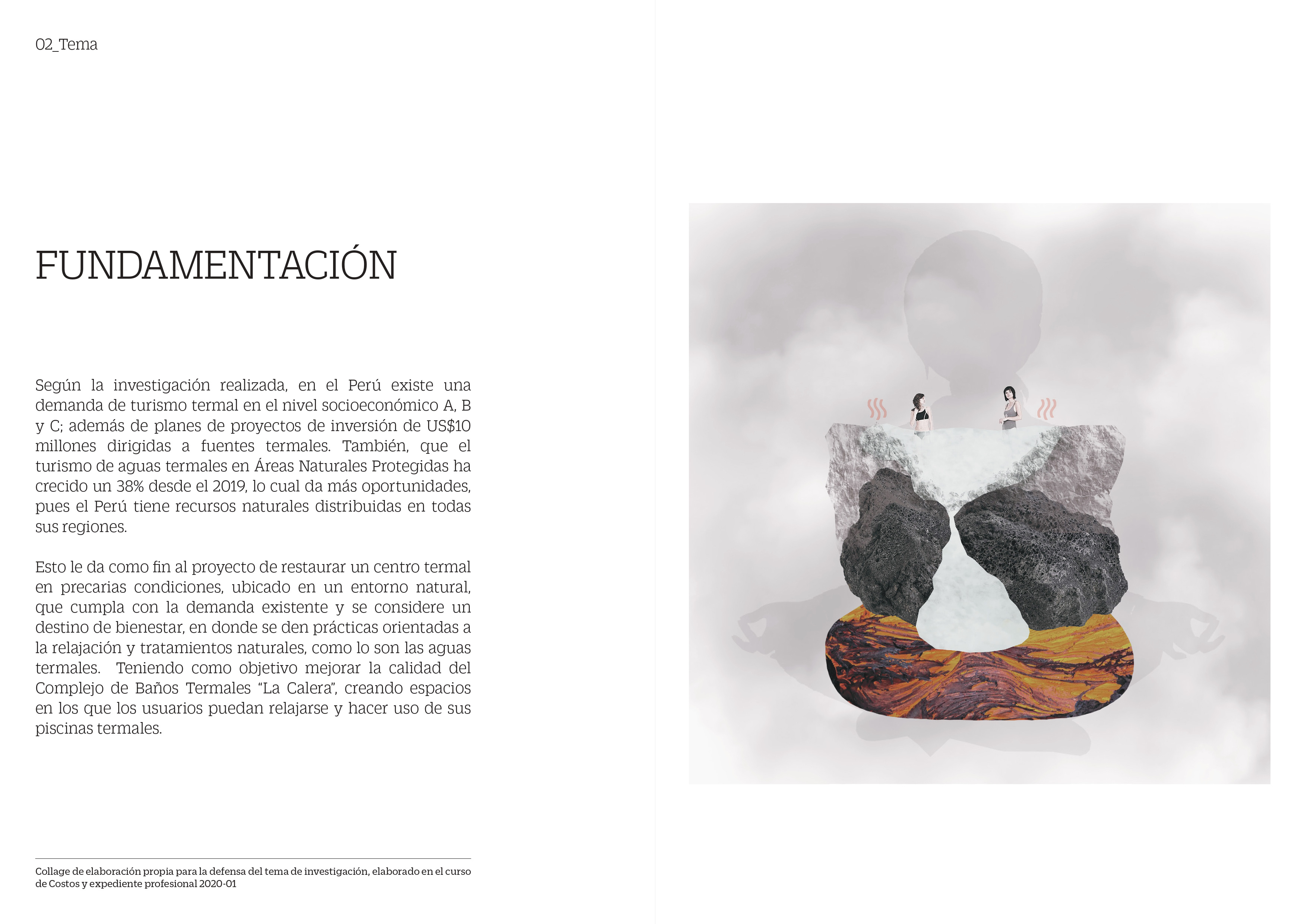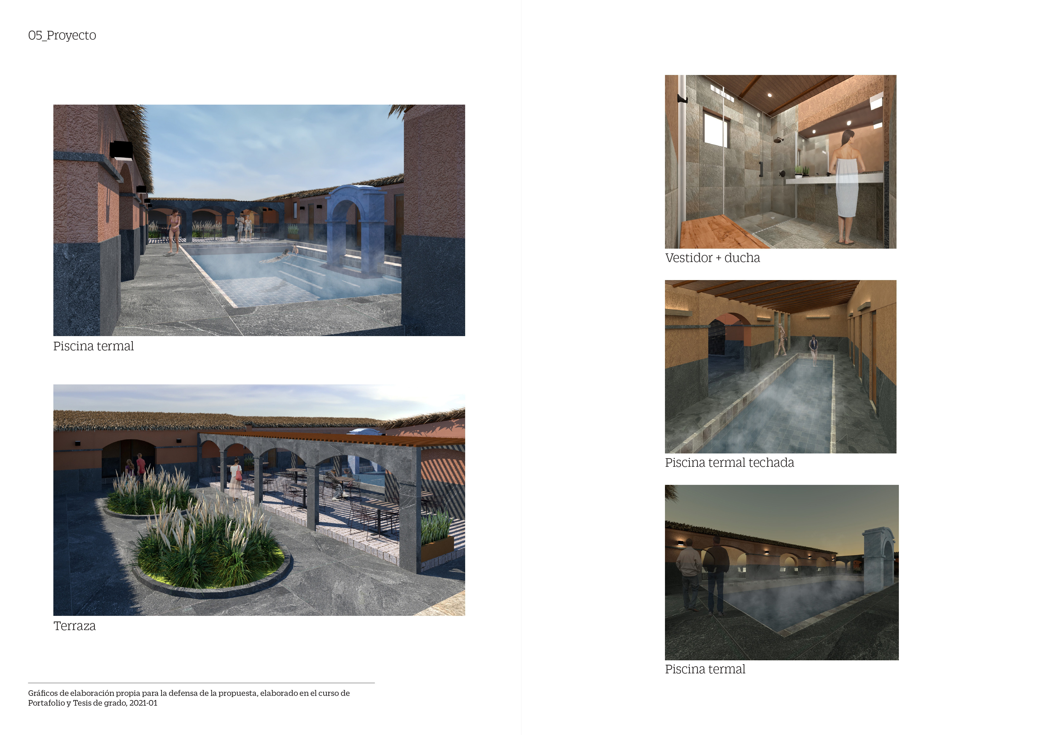 El proyecto de tesis de grado se basó en la restauración del Complejo de Baños Termales “La Calera” en Chivay, Arequipa como un centro de bienestar termal. El sector más desarrollado de este está compuesto por una piscina termal envuelta de cambiadores, SS.HH y duchas.