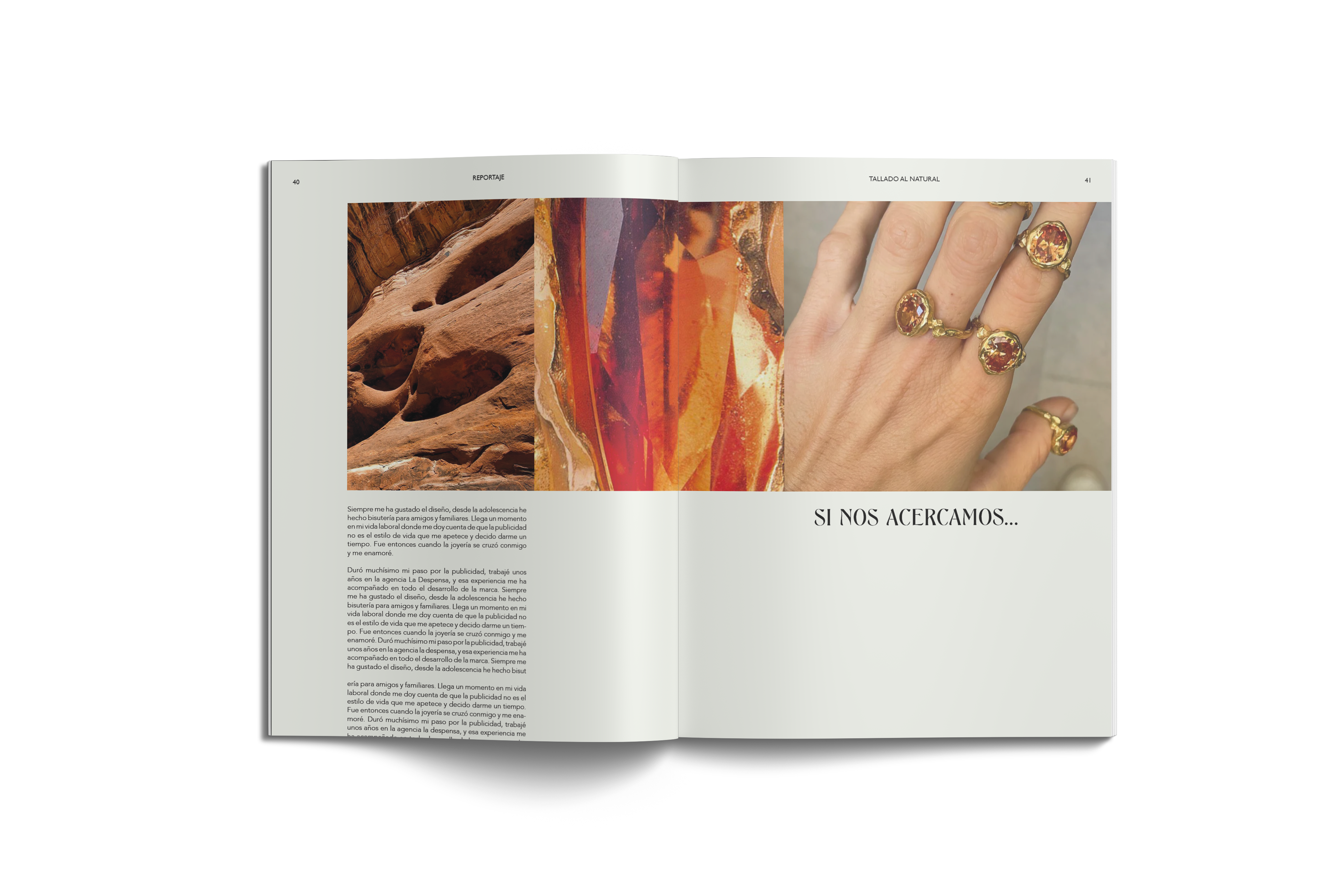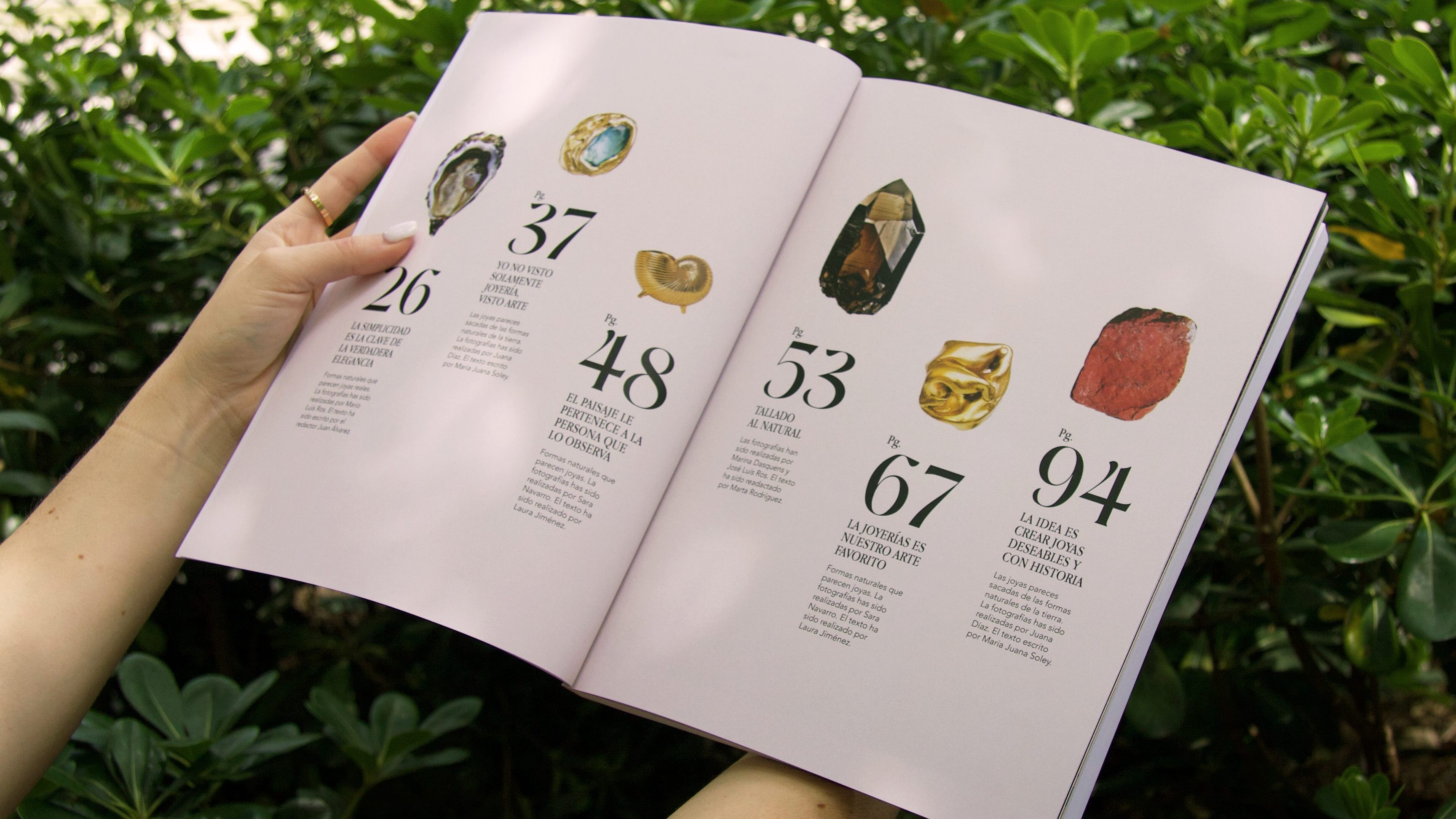 Con este proyecto, pudimos tener procesos creativos experimentales con imágenes, tipografías y formas inspirados en elementos orgánicos, la naturaleza y las joyas.